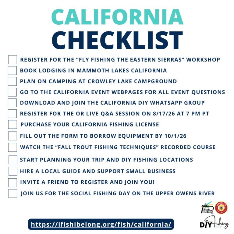 Beginners will get the most out of the event by coming prepared. We recommend watching the recorded virtual courses included with your registration, signing up for the FREE “Intro to Fly Fishing” online course, attending the California Q&A session, and joining us during the “Fly Fishing the Eastern Sierras” donation-based workshop and social fishing day on Friday, 10/9/26. Our co-hosts will be available throughout the event to answer questions and offer support as you build confidence on the water.