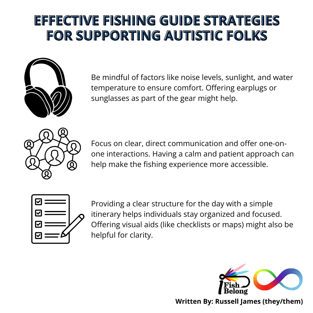 Now that we understand the three pillars of autism, here are some strategies that guides, organizations, and the broader fishing community can use to better support autistic anglers.